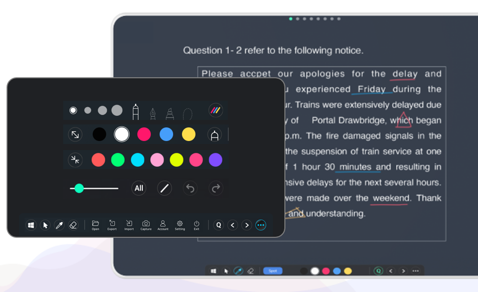 We provide writing tools and real-time quiz modules that can be used in classes.